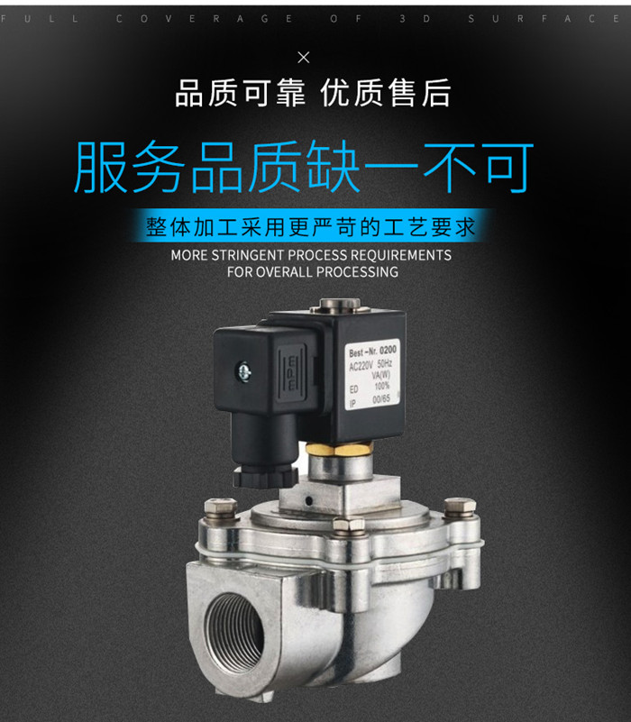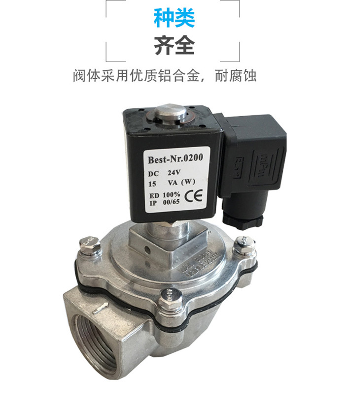 安裝方法:電磁脈沖閥輸入端(IN),與儲氣筒金屬管相連接,其輸出端與除塵箱噴吹管連接,連接螺紋間均填以四fo乙烯生料帶緊固密封。